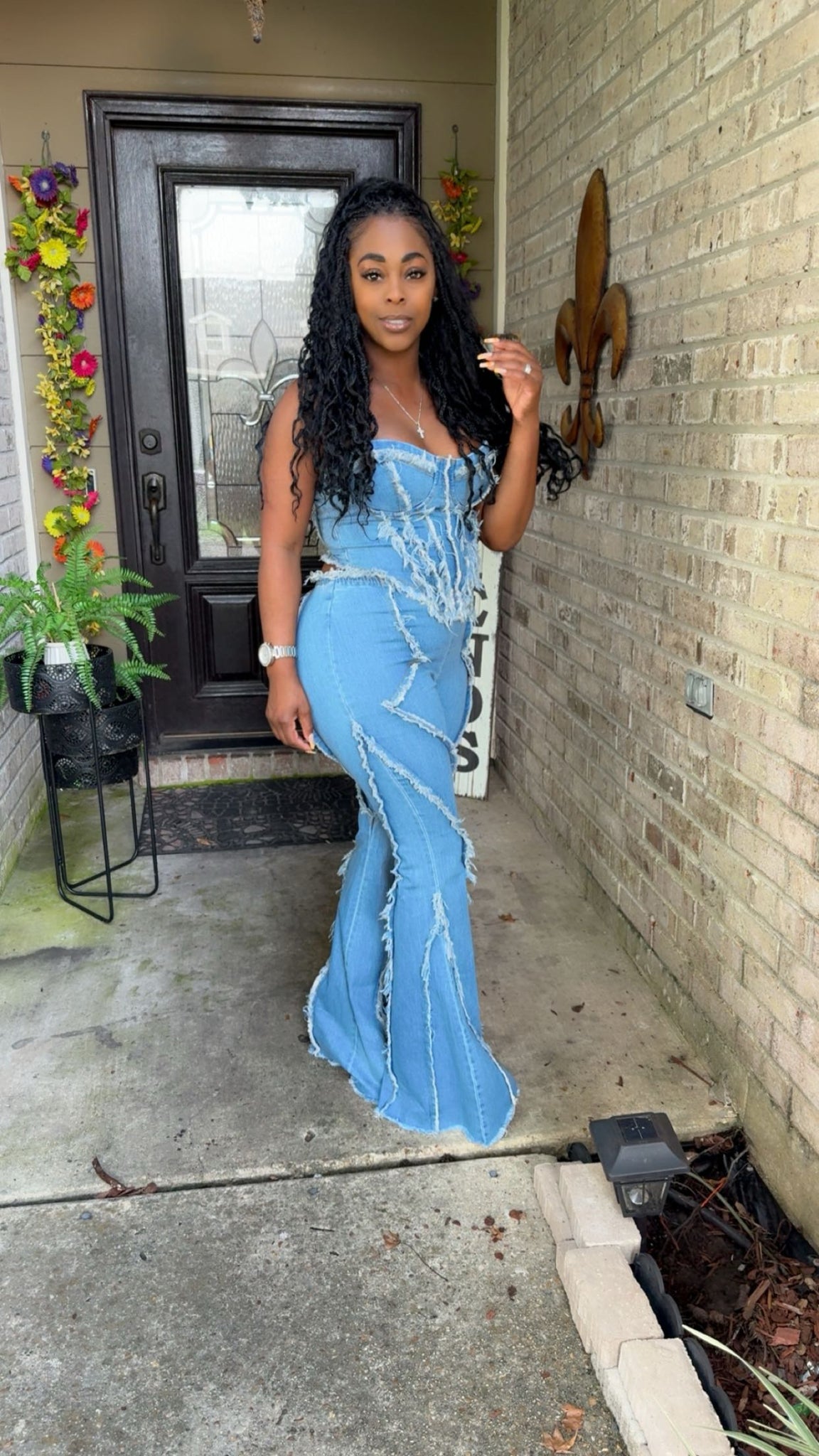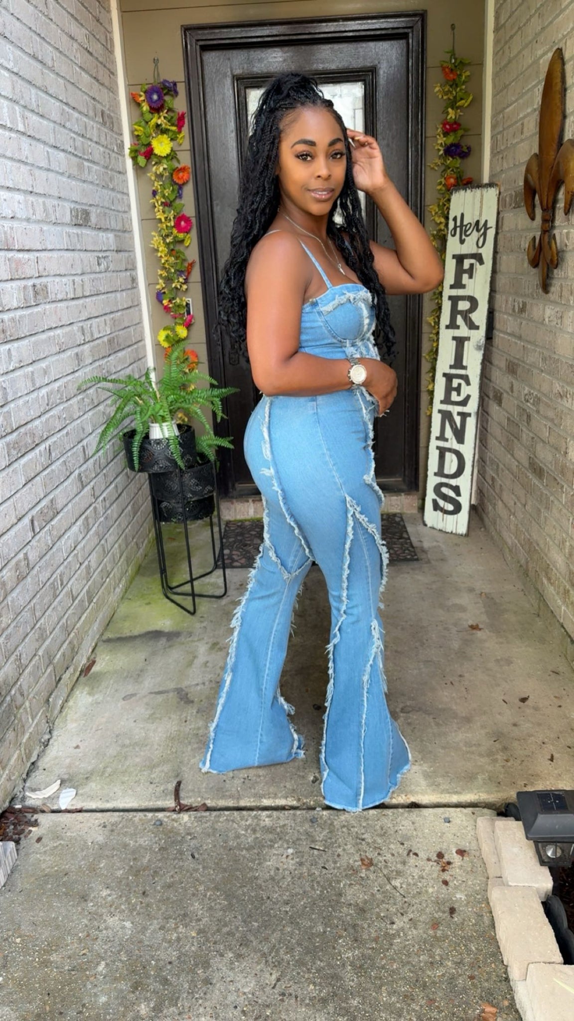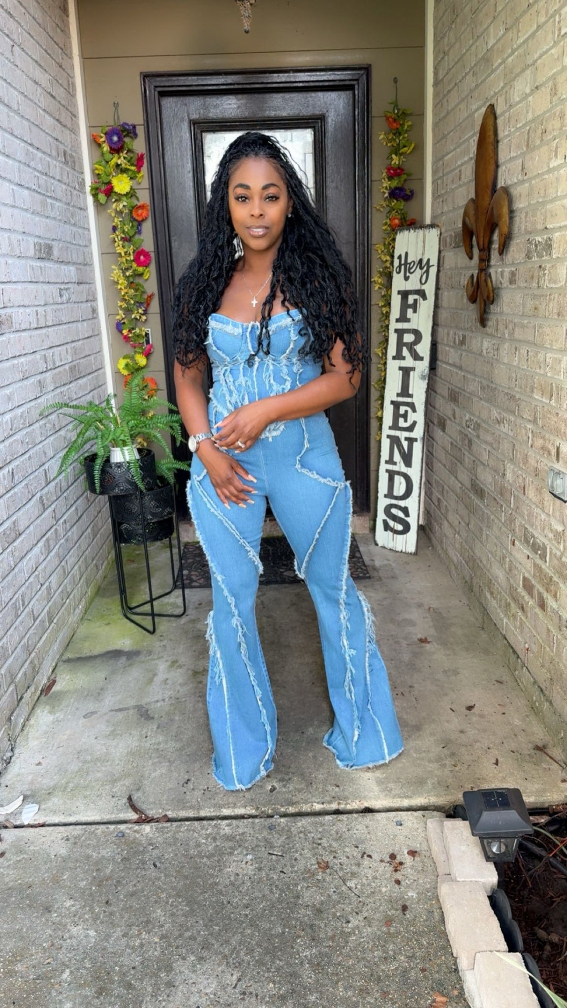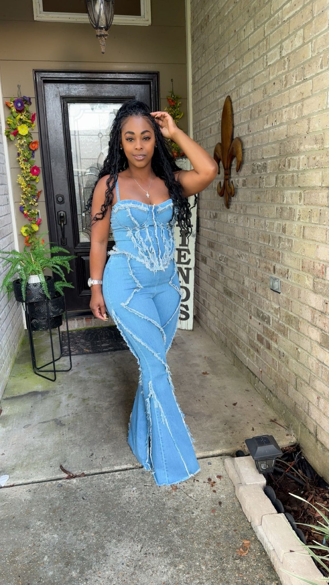 Model wearing a size small stretch adjustable straps back zipper closure 95% cotton 5% spandex